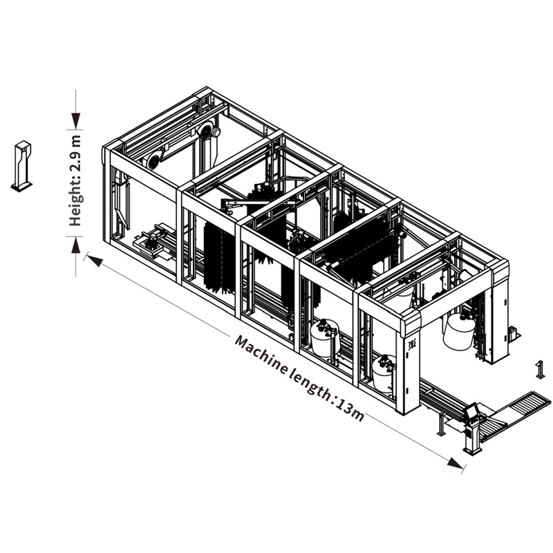 14m Conveyor Car Wash Machine is an ideal length for most locations. It can wash approximately 50 – 60 cars per hour. An 14m conveyor is suitable for most locations as you can get plots that can accommodate equipment of this length along with turning radius and space for line up. 4 swing arm brushes provide very good cleaning along with the skirt brushes.